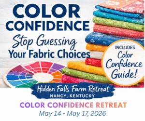 Join Certified Color Confidence Instructor Alesia Willett at Hidden Falls Farm Retreat for a fun, hands-on workshop that takes the mystery out of choosing fabrics and colors. Learn simple color theory, explore fabric combinations, and build the confidence to create beautiful, balanced palettes that reflect your personal style!